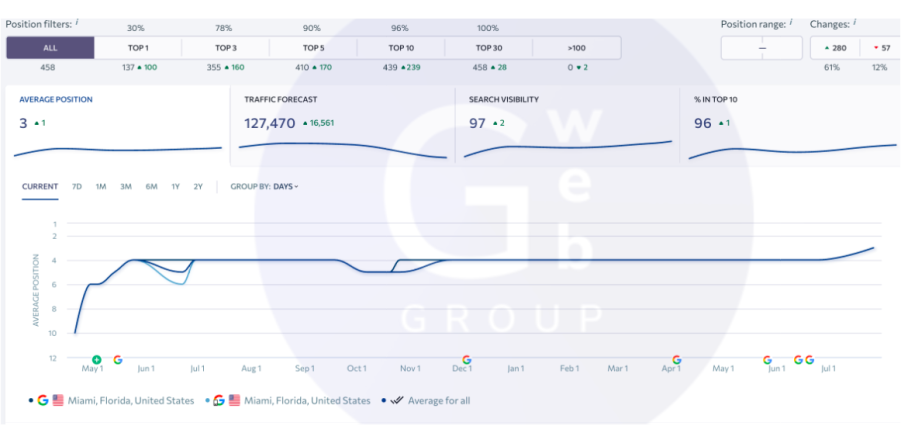Наша команда виконала швидку міграцію на повністю керований WordPress, фактично відтворивши сайт і сформувавши сучасну SEO-орієнтовану архітектуру. Стратегія була спрямована на максимальне посилення локальної пошукової видимості, зростання авторитету домену та створення масштабованої інфраструктури, здатної забезпечувати стабільний потік органічного трафіку, бронювань і зростання доходу на ринку оренди яхт та гідроциклів у Майамі.